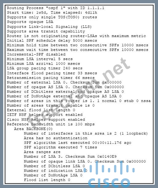 Number of areas in this router is 2. 2 normal 0 stub 0 nssa