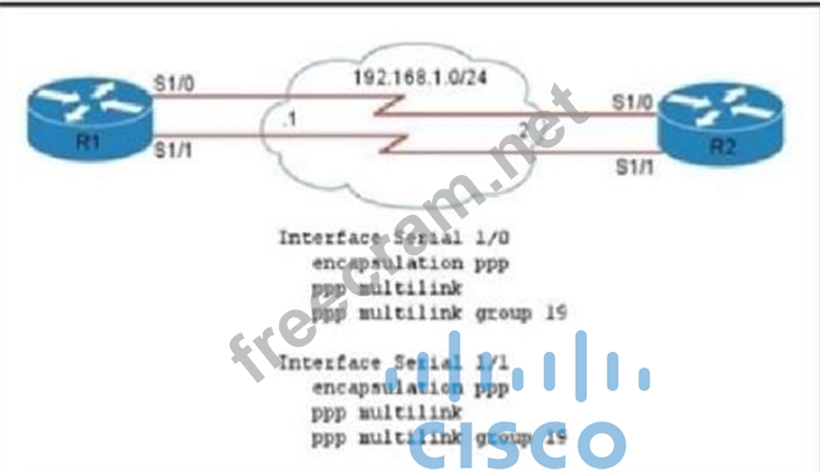 Refer to the exhibit. You must complete the configuration on R1 so that a maximum of three links can &e used and fragmentation is supported. You must complete the configuration on R1 so that a maximum of three links can be used and fragmentation is supported. Which additional configuration accomplishes this task?