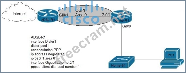 The PC is experiencing intermittent connectivity failures to the internet. If ADSL-R1 uses a PPPoE connection, what action can you take to correct the problem.