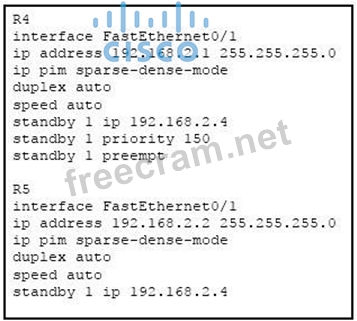 The interface FastEthernet0/1 of both routers R4 and R5 is connected to the same Ethernet segment with a multicast receiver. Which two statements are true? (Choose two)