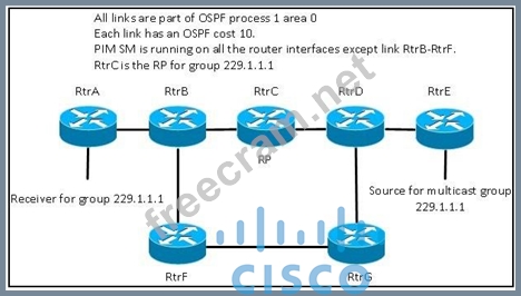 When the link between RtrB and RtrC goes down, multicast receivers stop receiving traffic from the source for multicast group 229.1.1.1.Which solution will resolve this?