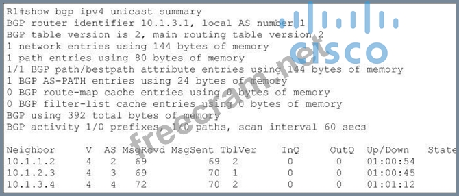 Question 393: Refer to the exhibit. (Exhibit) Which statement about the R1...