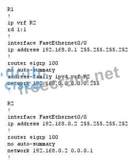 Question 17: Refer to the exhibit. (Exhibit) R1 and R2 have a working VRF...