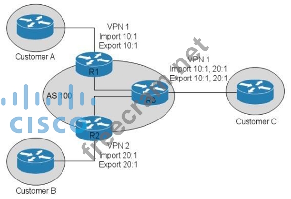 Question 17: Refer to the exhibit. (Exhibit) R1 and R2 have a working VRF...