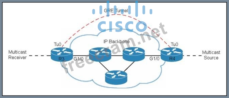 Explanation/Reference: Explanation: For a successful RPF verification of multicast traffic flowing over the shared tree (*,G) from RP, an ip mroute rp-address nexthop command needs to be configured for the RP address, that points to the tunnel interface. A very similar scenario can be found at the reference link below: ReferencE. http://www.cisco.com/c/en/us/support/docs/ip/ip-multicast/43584-mcast-over-gre.html