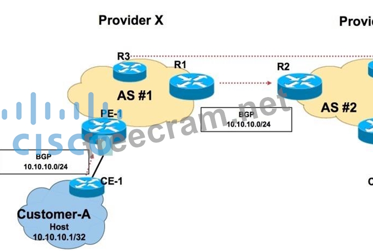 AS #1 and AS #2 have multiple EBGP connections with each other. AS #1 wants all return traffic that is destined to the prefix 10.10.10.1/32 to enter through the router R1 from AS #2. In order to achieve this routing policy, the AS 1 advertises a lower MED from R1, compared to a higher MED from R3, to their respective BGP neighbor for the prefix 10.10.10.0/24. Will this measure guarantee that the routing policy is always in effect?