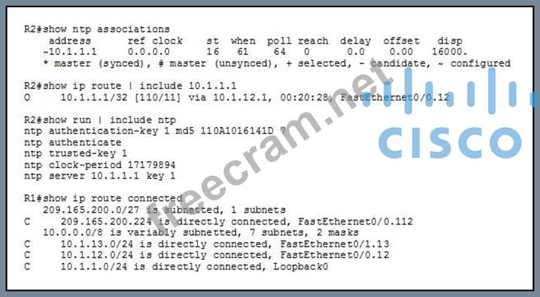 Question 408: Refer to the exhibit. (Exhibit) R1 and R2 have a working VRF...