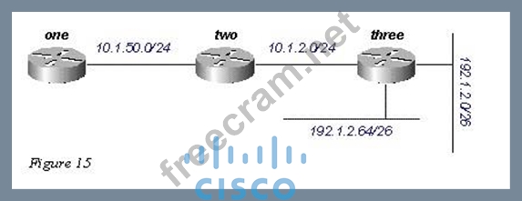 192.1.2.128/26, and add network statements for this network on Routers Two and Three, the 192.1.2.0/24 auto-summary is then generated on Router Two.
