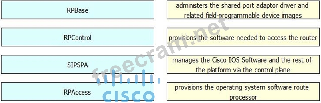 Drag and drop the Cisco IOS XE subpackage on the left to the function it performs on the right.