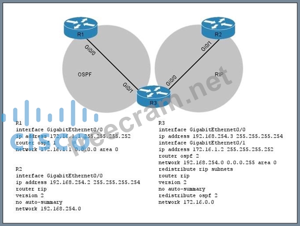 Question 27: Refer to the exhibit. (Exhibit) R2 is mutually redistributin...