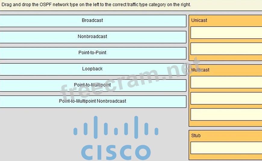 Question 8: Drag and drop the OSPF network type on the left to the corre...