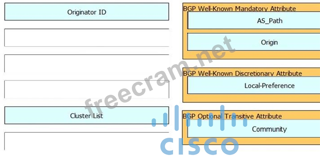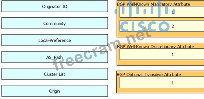 Drag and drop the BGP attribute on the left to the correct category on the right.