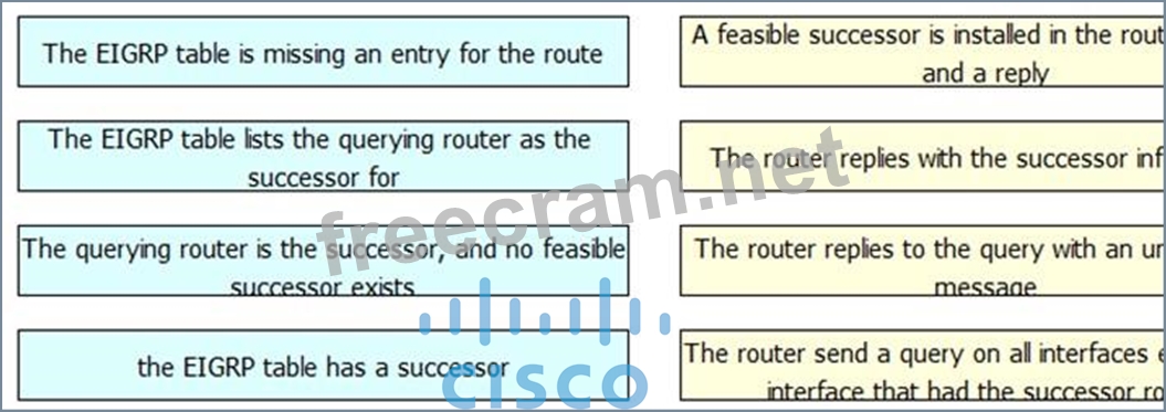 Question 356: DRAG DROP Drag and drop the EIGRP query condition on the lef...