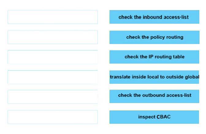 Drag and drop the NAT elements on the left into the correct sequential order on the right.