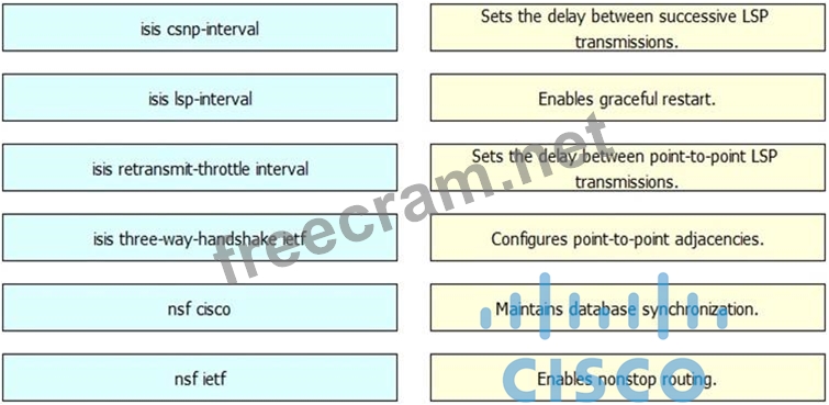 Drag each IS-IS command on the left to its effect on the right.