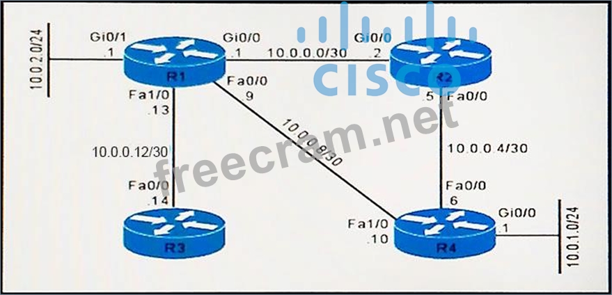 Question 374: (Exhibit) Refer to the exhibit. If router R1 sends traffic m...