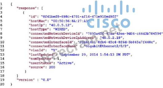 Refer to the exhibit. Which data format is used in this REST API call?