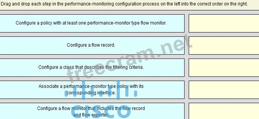 Drag and drop each step in the performance-monitoring configuration process on the left into the correct order on the right.