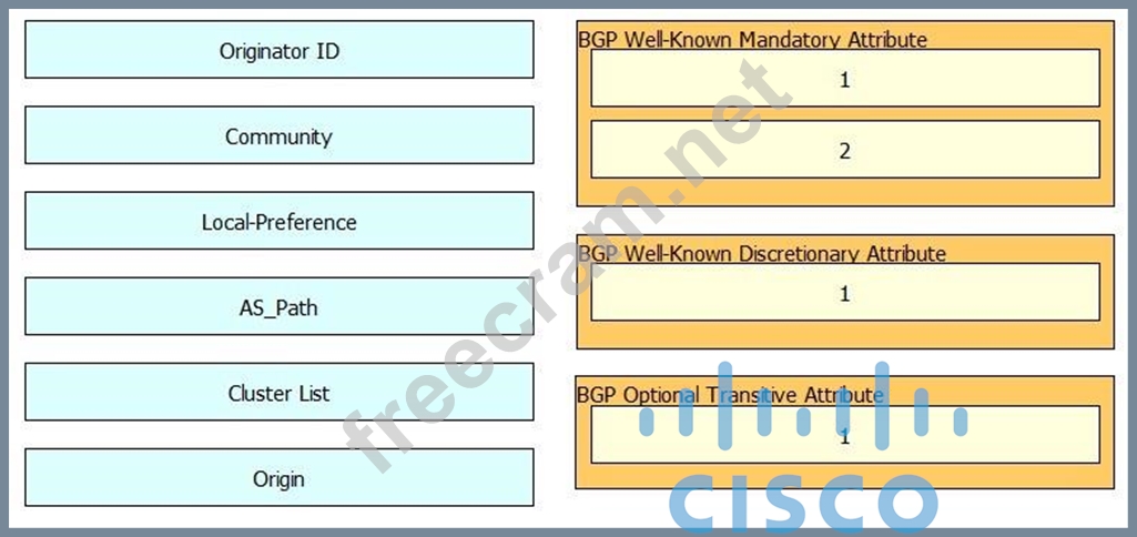 Drag and drop the BGP attribute on the left to the correct category on the right.