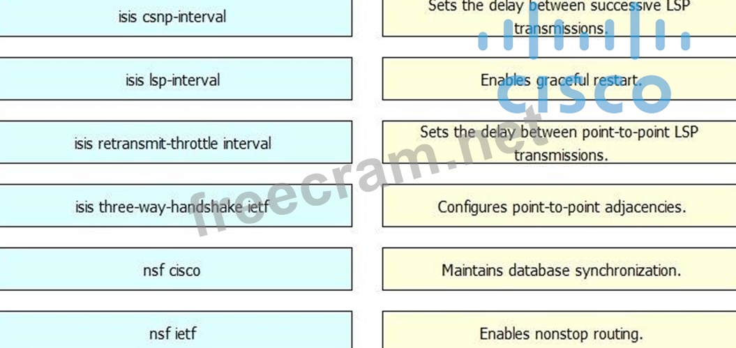 Question 190: DRAG DROP Drag each IS-IS command on the left to its effect ...