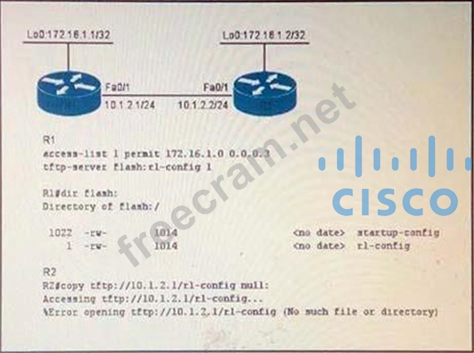 Refer to the exhibit. When R2 attempted to copy a file from the TFTP server, it received this error message. Which action can you take to correct the problem?