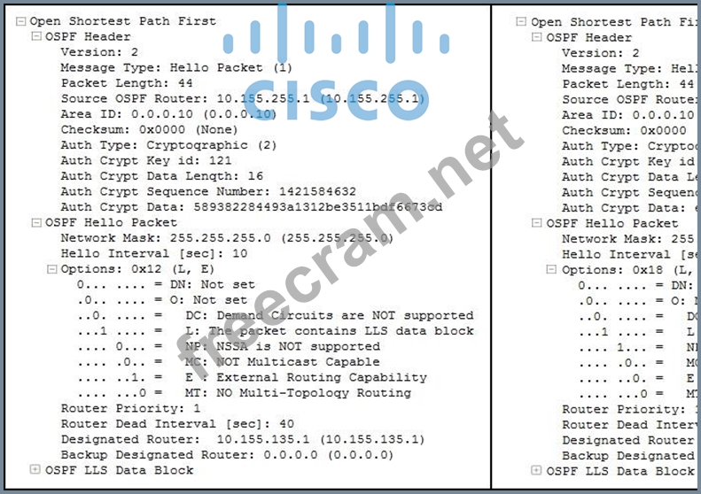 Question 226: Which three parameters must match to establish OSPF neighbor...