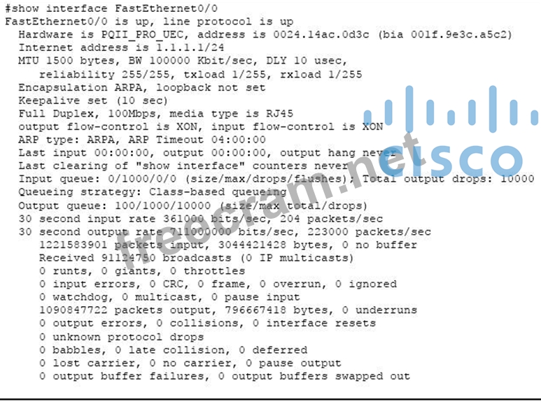 Which two are causes of output queue drops on FastEthernet0/0? (Choose two.)