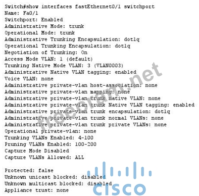 Question 64: Refer to the exhibit. (Exhibit) Which VLANs are permitted to...