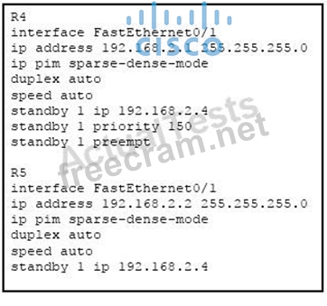 The interface FastEthernet0/1 of both routers R4 and R5 is connected to the same Ethernet segment with a multicast receiver. Which two statements are true? (Choose two)