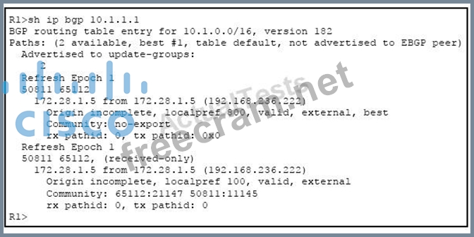 Question 170: Refer to the exhibit. (Exhibit) Which statement about the R1...