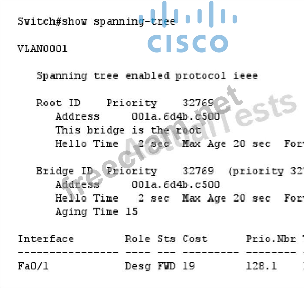 Question 43: Refer to the exhibit. 8 (Exhibit) All switches have default ...