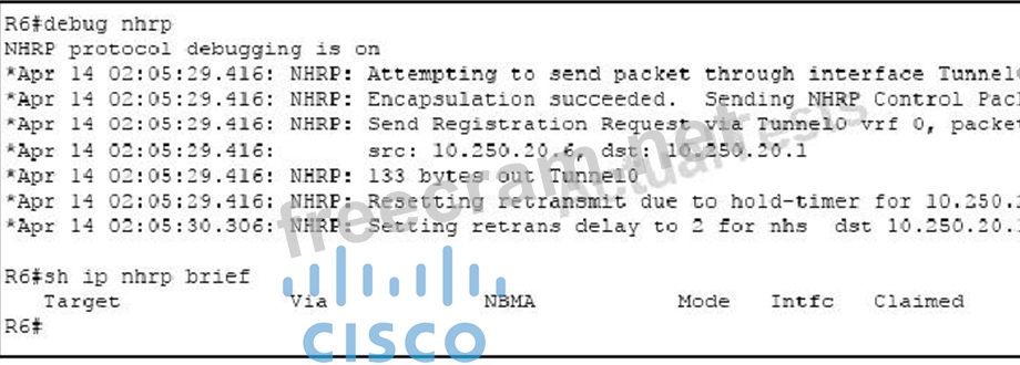 Question 6: Refer to the exhibit. (Exhibit) NHRP registration is failing...