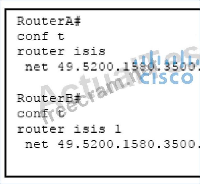 Router A and router B are physically connected over an Ethernet interface, and ISIS is configured as shown. Which option explains why the ISIS neighborship is not getting formed between router A and router B?