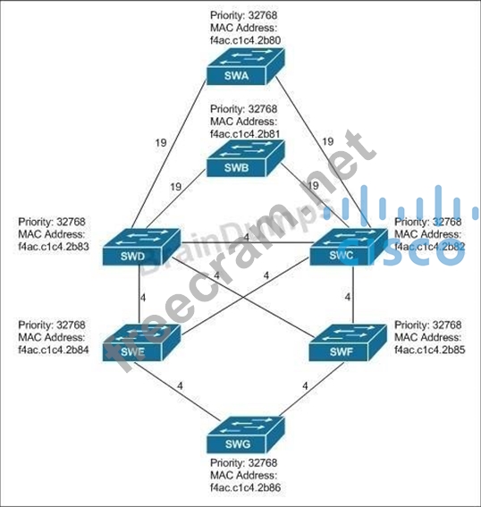 Question 182: Refer to the exhibit. All switches have default bridge prior...