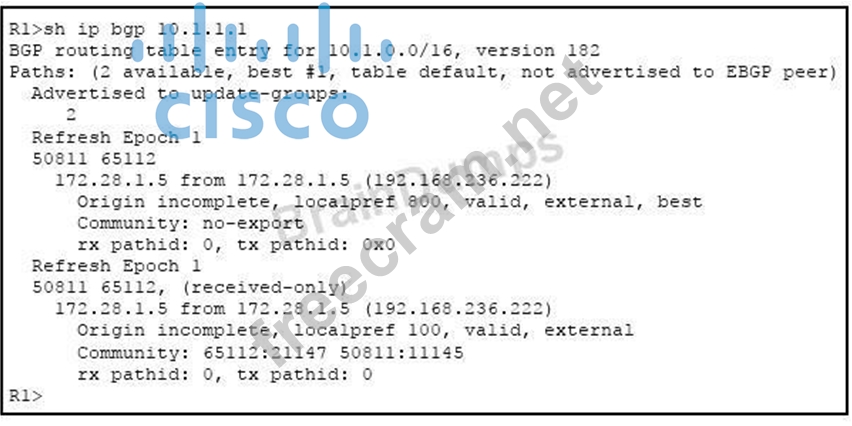 Question 191: Refer to the exhibit. What will be the extended community va...
