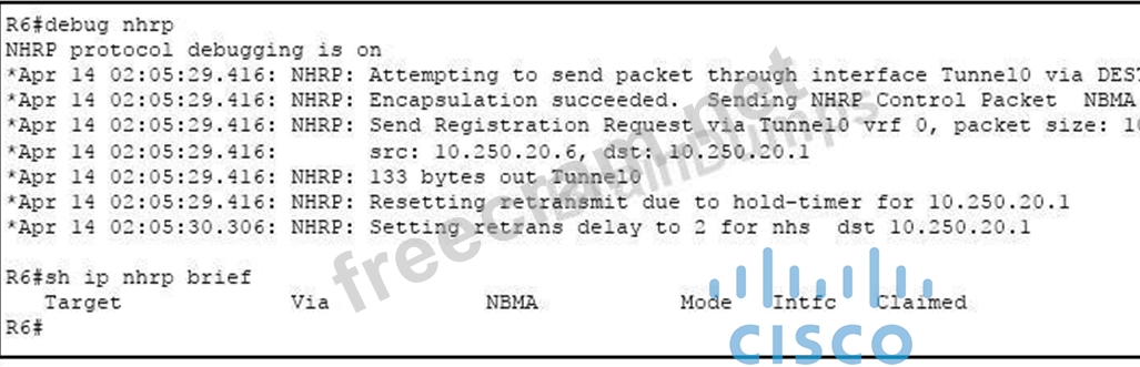 Question 196: Refer to the exhibit. NHRP registration is failing; what mig...
