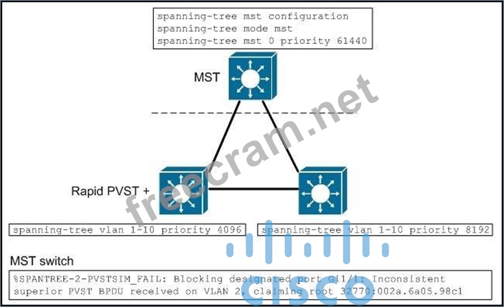 Refer to the exhibit. What is causing the error to occur on the MST switch?