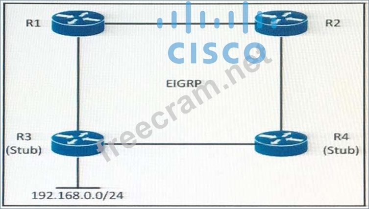 Question 34: External EIGRP route exchange on routers R1 and R2 was faili...