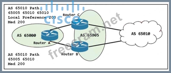 Question 43: (Exhibit) Refer to the exhibit. Router A is connected as a B...