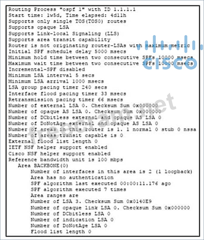 Question 41: (Exhibit) Refer to the exhibit. Which statement about the ou...