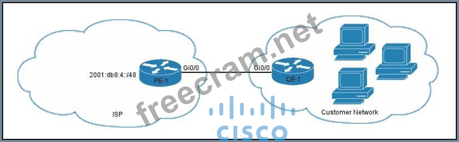 Which configuration can you implement on PE-1 to allow CE-1 to receive delegated IPv6 prefixes?