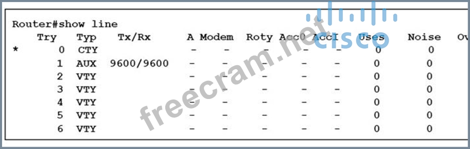 Refer to the exhibit. According to the given show line output, which type of line is connected to the router?