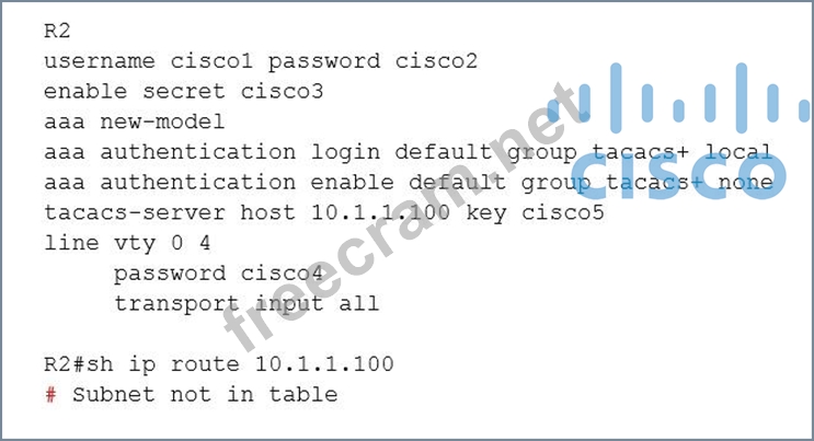Question 56: (Exhibit) Refer to the exhibit. If R1 contacts the RADIUS se...