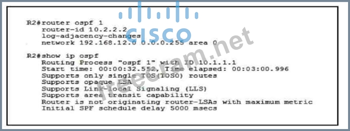 Refer to the exhibit. After you applied a new configuration to router R2, you executed the show ip ospf
