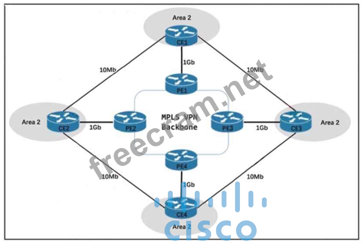 Refer to the exhibit. Your network uses an MPLS VPN backbone with OSPF between all PE and CE