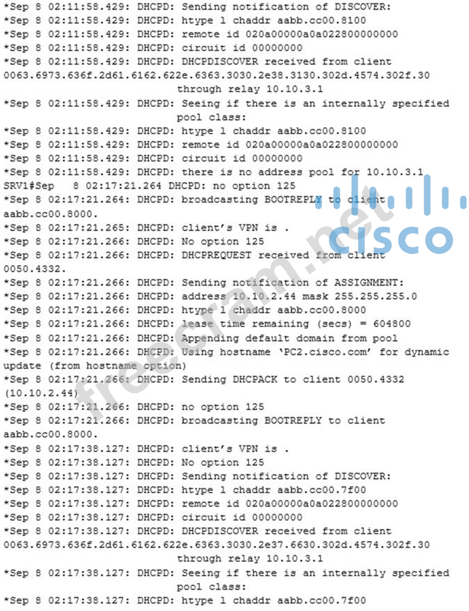 Refer to the exhibit. If a DHCP server has generated the given debug output, which two statements about