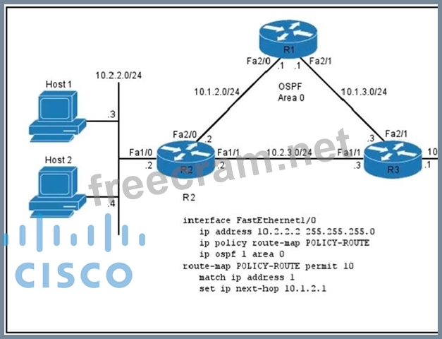 configuration can you apply to R2 so that traffic from host 1 uses the path R2-R1-R3 to reach the web