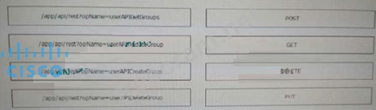 Drag and drop the Cisco UCS Director REST URI from the left onto the correct HTTP method on the right.