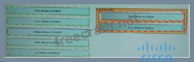 Drag and drop two configurations that should fail without data loss from the left column into the 2 Devices Lost column on the right.