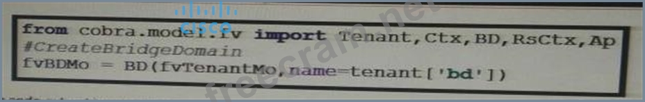 The cobra code extract is expected to create a BD object. Assume that fvTenantMo has been populated with the correct tenant object and all module prerequisites have been met. Which statements are true?